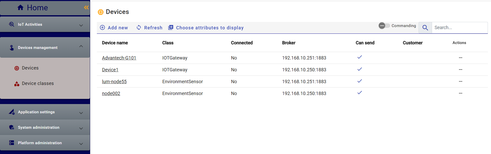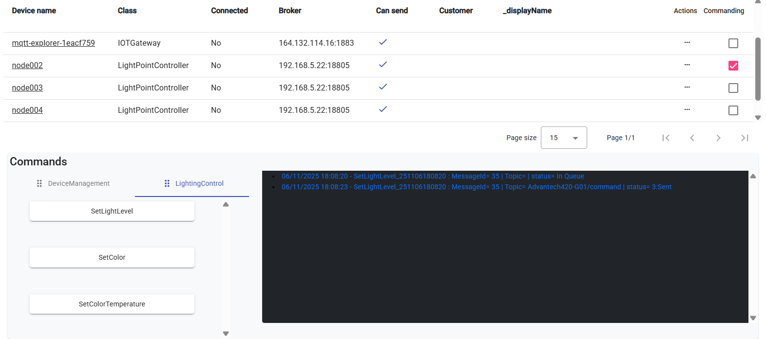 From the Devices List View, users can toggle the “Commanding” button in the toolbar to enter command mode.
