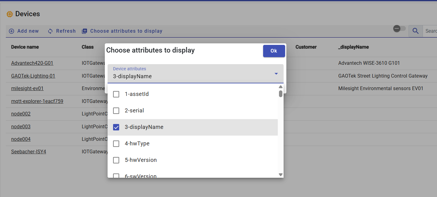 Users can also select which device attributes to display and search by them via the “Choose Attributes” button in the toolbar.