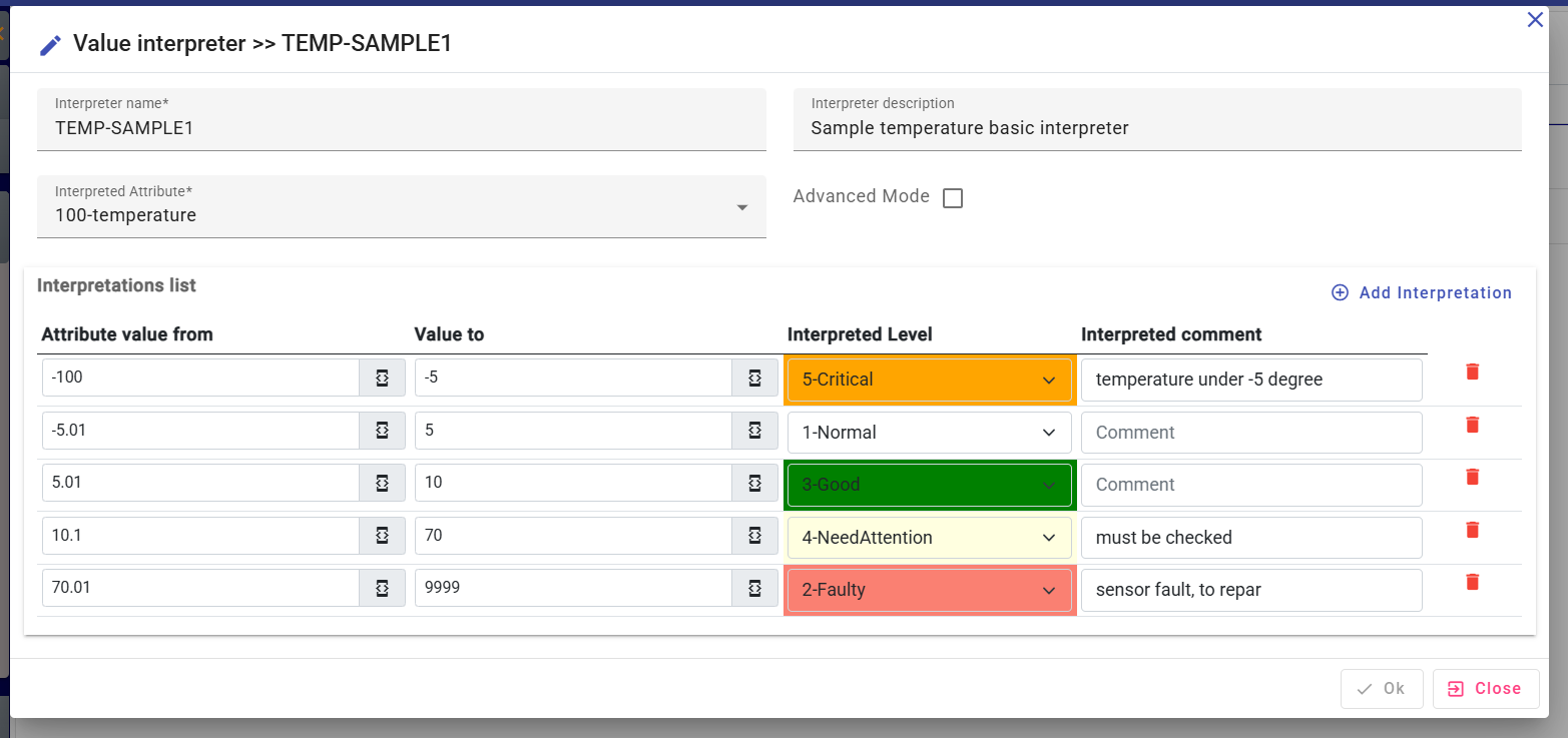 Depending on the IoT domain and the attributes involved, they allow the received values to be classified into levels. This allows system flows to immediately identify urgent messages or those with critical values and provide timely notification or execute a defined process.